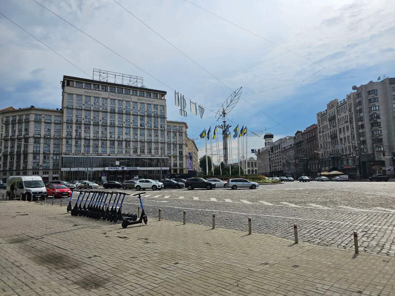 As I got off the bus at Kyiv Central Bus station, the differences from the rest of Europe were immediately clear. Cyrillic letters plastered the information signs & building names. Grey, brutalist concrete shaped the city blocks while brighter colours defined the older pre-Soviet architecture. Instead of the trams I had seen in every European capital so far, yellow buses ran along the streets with electric cables. Grey clouds hung over the city, shielding it from the burning summer heat I had experienced in Central and Western Europe.