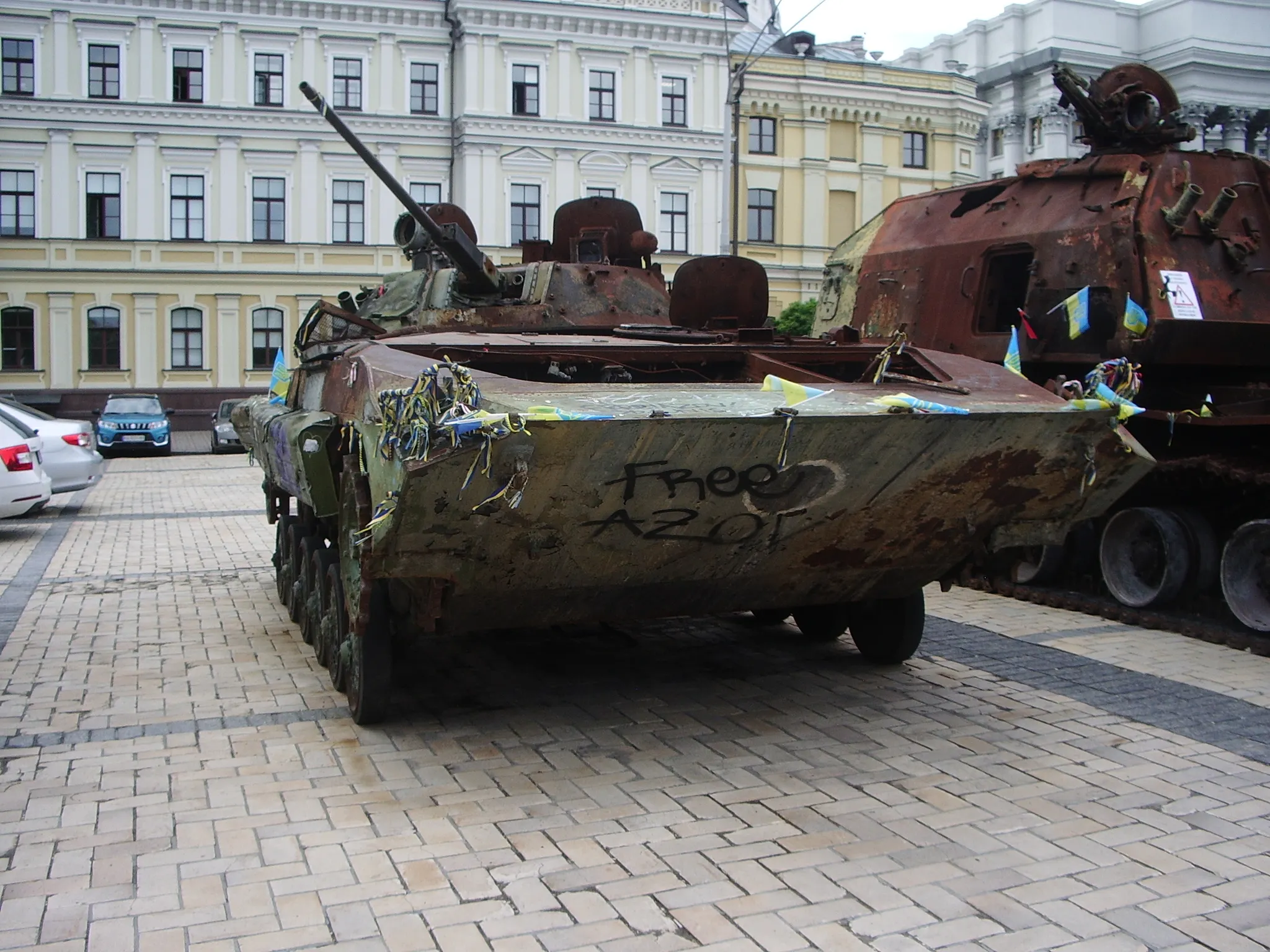 Throughout Kyiv, there were many memorials to the fallen and small pieces of evidence that the Russians had come close to conquering the country in 2022. The Russians’ past presence manifested itself not only through the memorials, but also in the form of an exhibition of destroyed vehicles near the St Michael’s Monastery. The totalled and captured Russian military vehicles was undeniable evidence that Russian tanks had rolled through the streets of Kyiv. Photos of the Kyiv invasion (that are too gory to be shown here) depicted charred corpses of civilians burned by the Russian soldiers - evidence of Russian war crimes to be documented and prosecuted by the Ukrainian government.